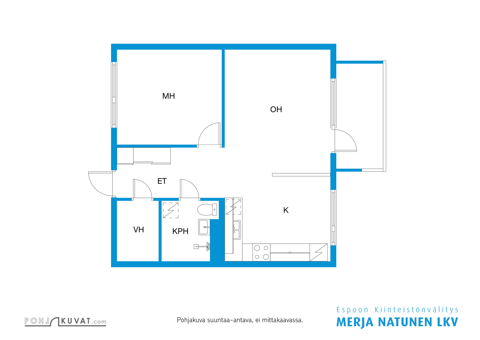| Huoneistoselitelmä | 2h+k+kh+vh+parveke |
